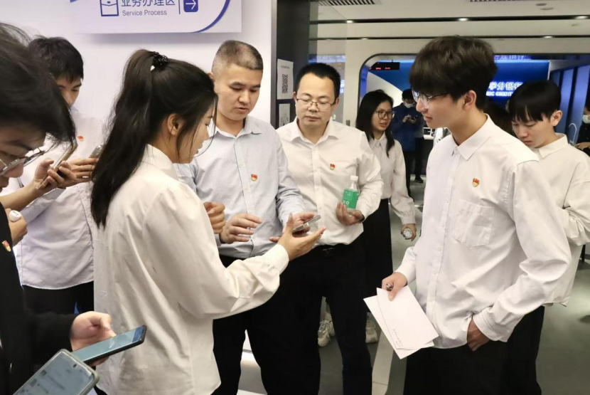 活动伊始,学分银行管理中心党支部同志组织人工智能学院学生第一党支部同志们深入参观体验了学分银行实体中心。通过专业细致的讲解和生动的现场展示,老师和学生们对学分银行的功能定位、运行机制以及在构建服务全民终身学习的教育体系中的重要作用有了直观且系统的认识。在学分银行工作人员指导下,学生支部成员现场体验了个人终身学习账号激活流程,并积极参与了相关问卷调研,切实体会到数字化、个性化终身学习服务的先进性与实用性。